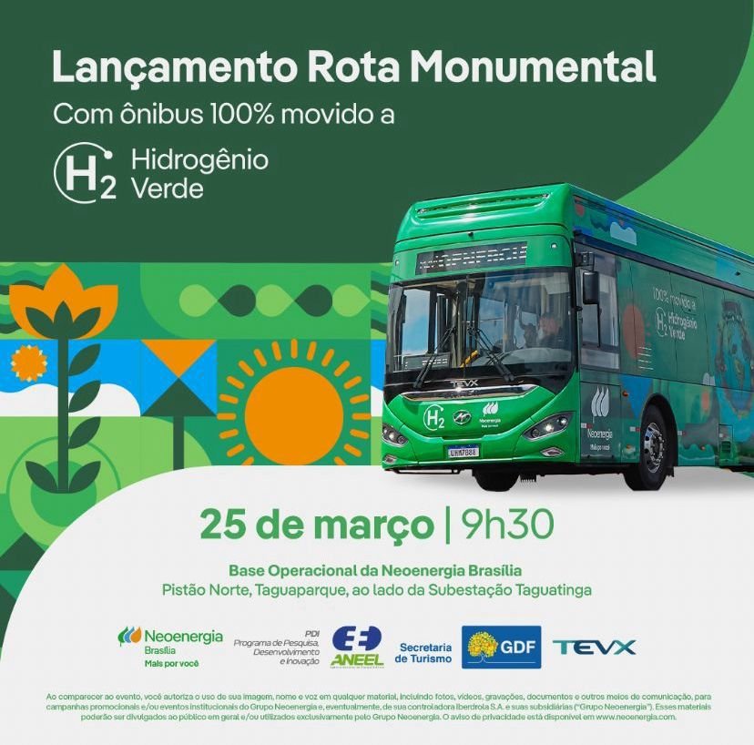 O Distrito Federal será palco de uma iniciativa histórica que une mobilidade sustentável e turismo cívico. A Neoenergia, em parceria com a TEVX e o Governo do Distrito Federal, realiza o lançamento oficial da Rota Monumental, o primeiro city tour do país operado por um ônibus 100% movido a hidrogênio verde, combustível com zero emissão de poluentes.