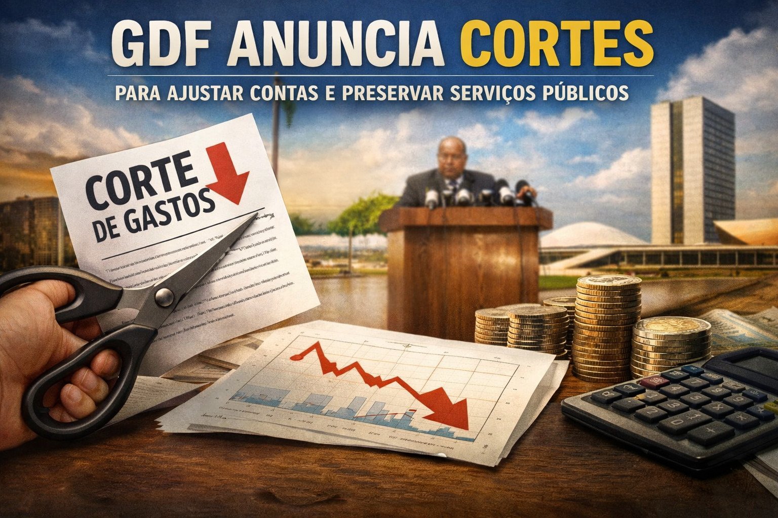 GDF anuncia cortes para ajustar contas e preservar serviços públicos Medidas incluem redução de contratos, aluguéis e frota, com foco no equilíbrio fiscal
